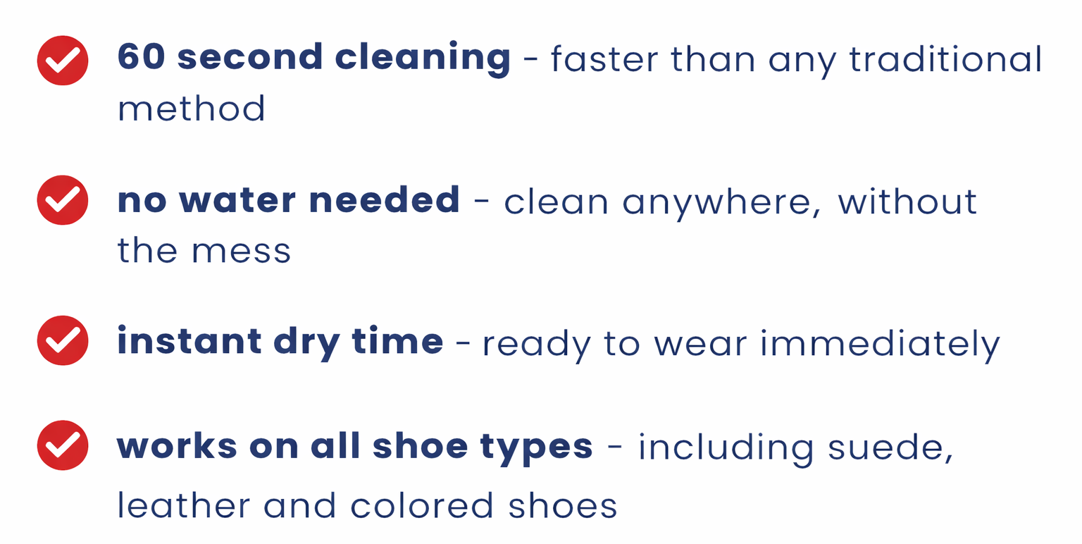 No water damage, no long drying time — just quick, effective cleaning that keeps your footwear looking fresh and protected.