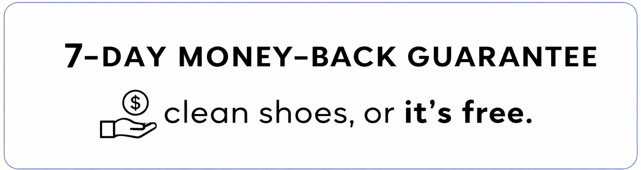 Our water-free foam starts breaking down dirt and stains instantly. Most shoes look clean within 60 seconds of brushing and wiping, depending on how dirty they are.