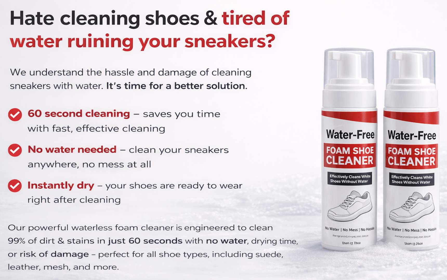 India’s #1 Water-Free Foam Shoe Cleaner • Clean under 60 Seconds • No Water Needed • Instant Results • Loved by Thousands
